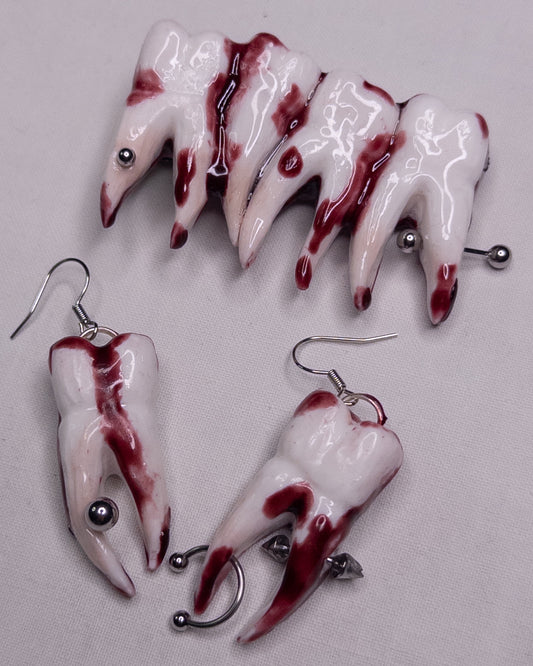 "tooth fairy" hairclip with earrings